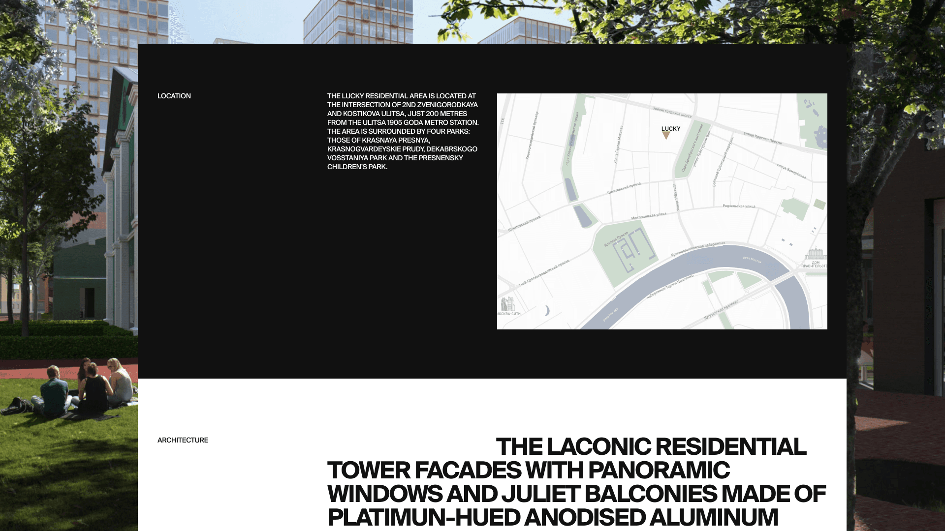 Landing page design for luxury housing complex in Moscow Lucky